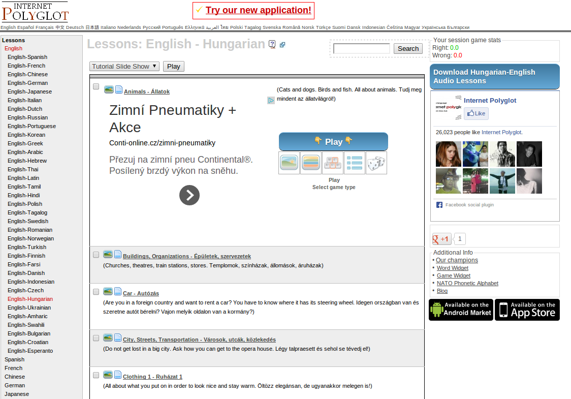 There are currently over forty lessons available in tutorial, guessing, typing, matching and mix formats. These Hungarian educational games are similar to learning with flashcards, with the added benefit of audio for pronunciation along with the fun of being able to mix and match the game experience.